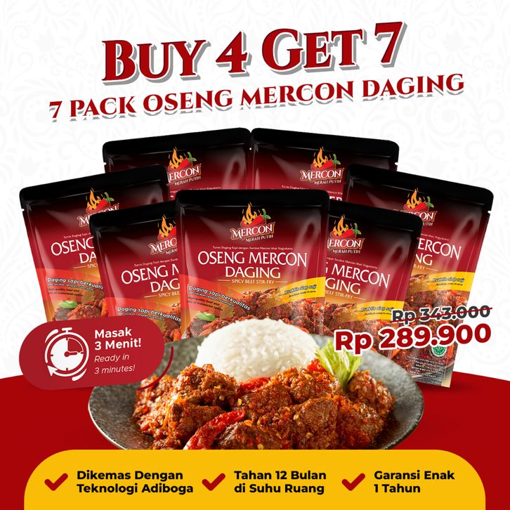 GRATIS ONGKIR (Buy4Get7) Hemat Combo Barbar || 7 x Oseng Mercon Daging - Mercon Merah Putih