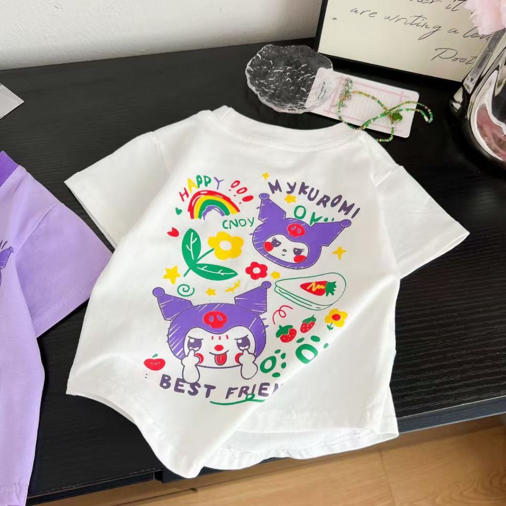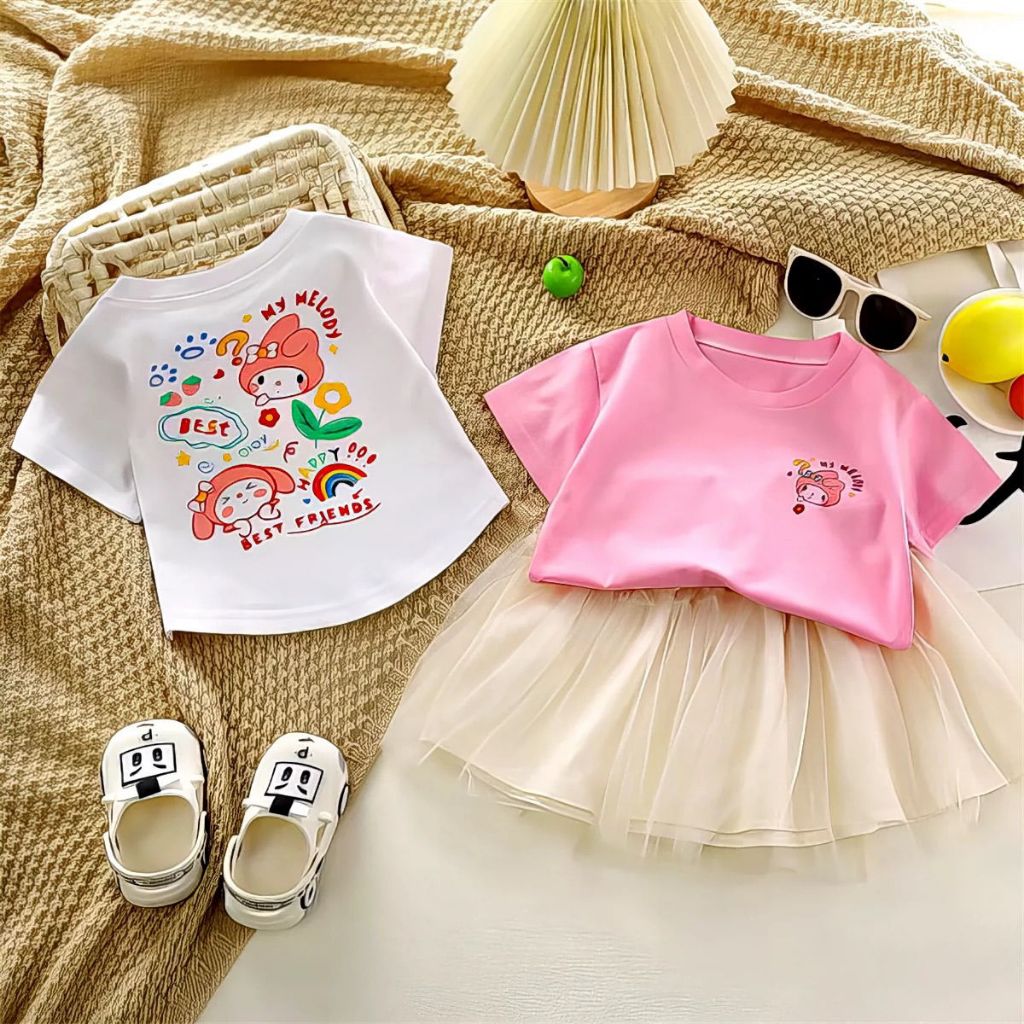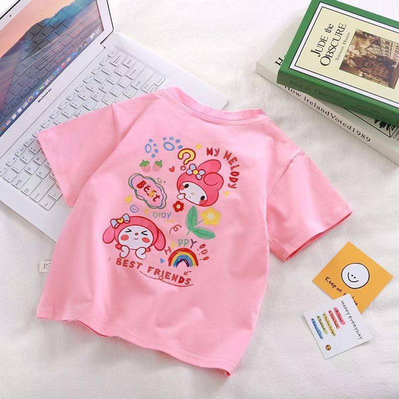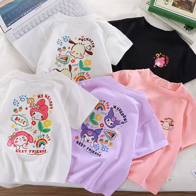Atasan katun untuk anak perempuan berusia 2-10 tahun, kaos bergambar kartun My Melody KUromi