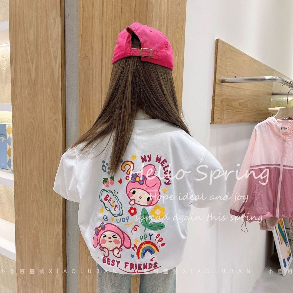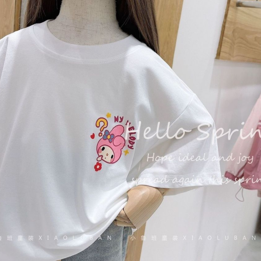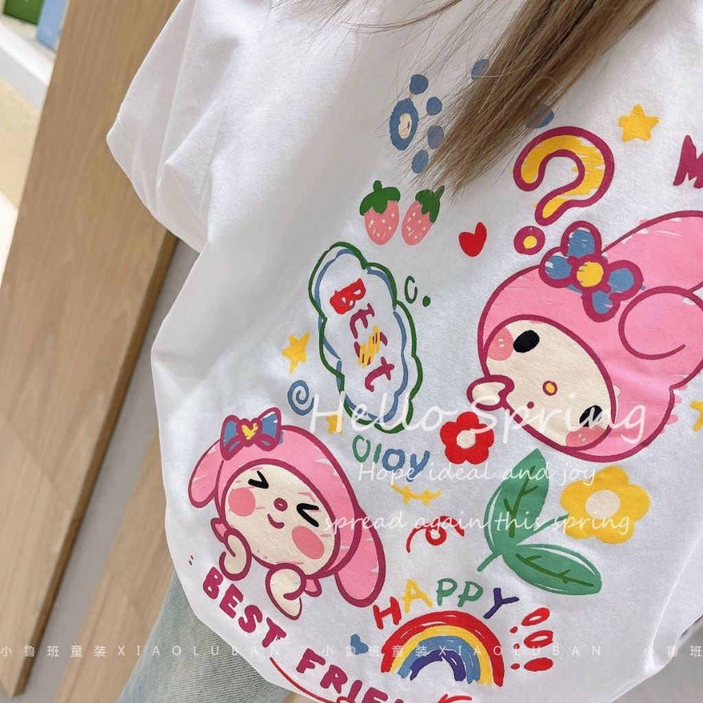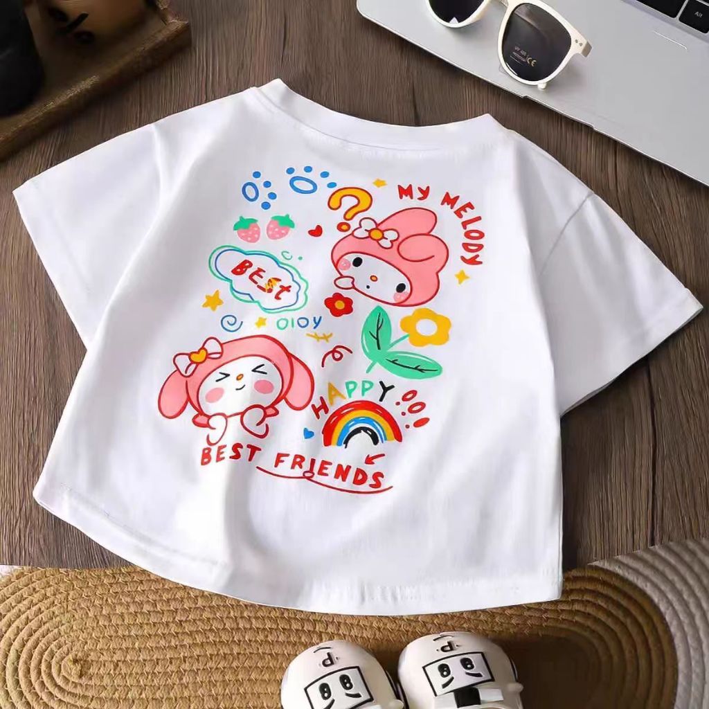 Atasan katun untuk anak perempuan berusia 2-10 tahun, kaos bergambar kartun My Melody KUromi