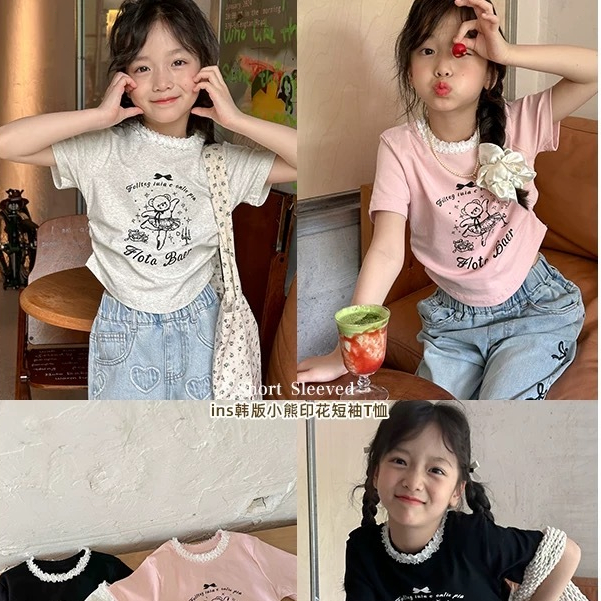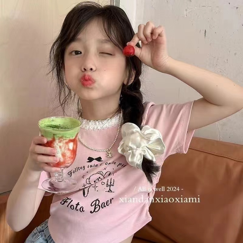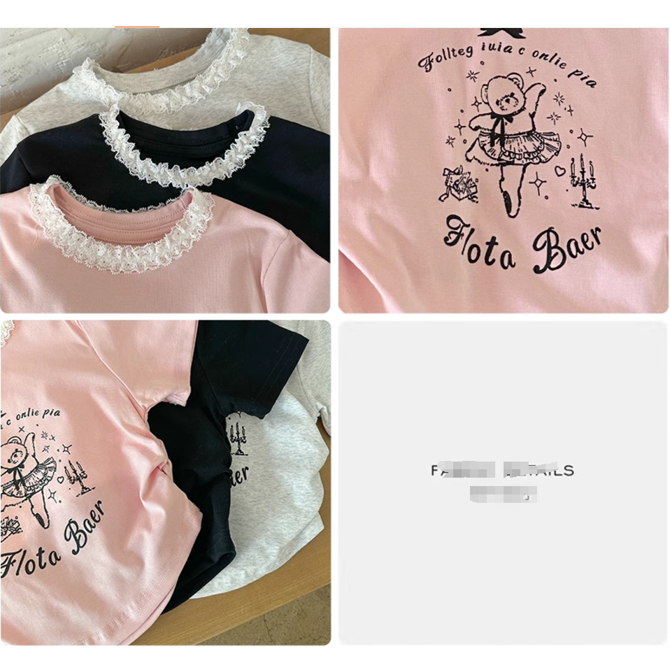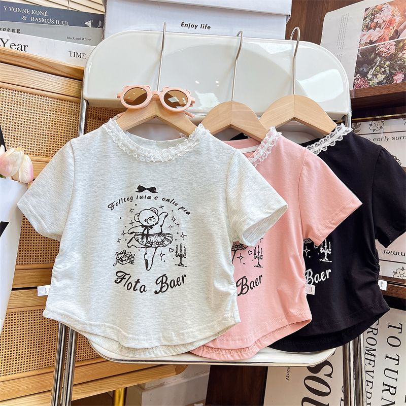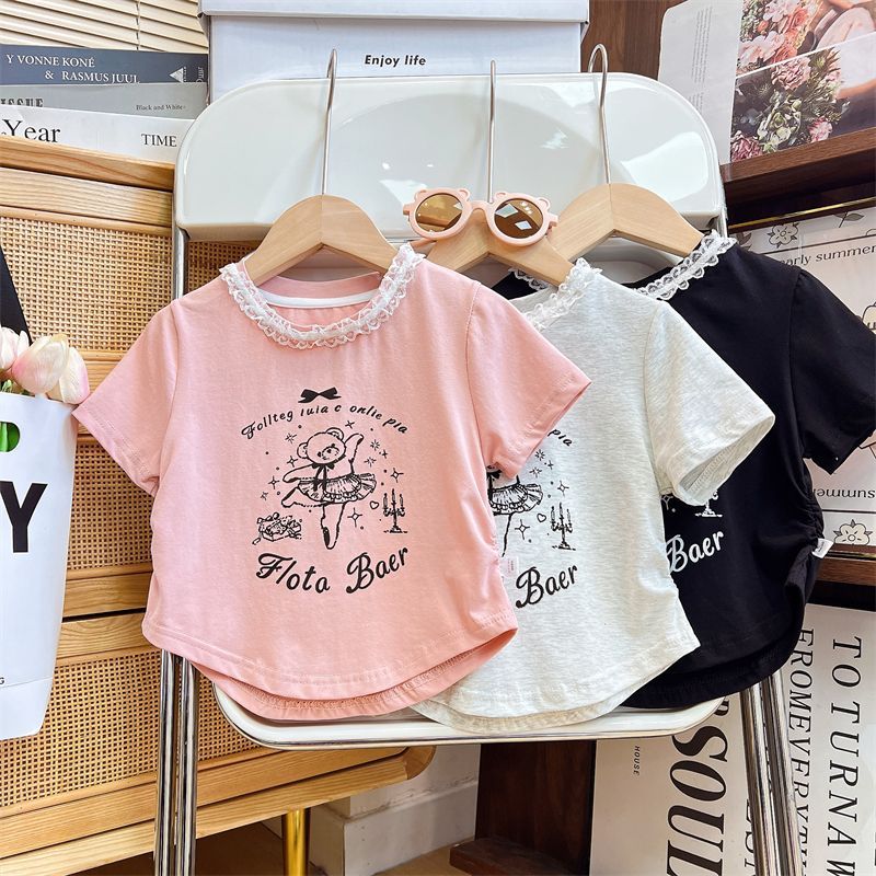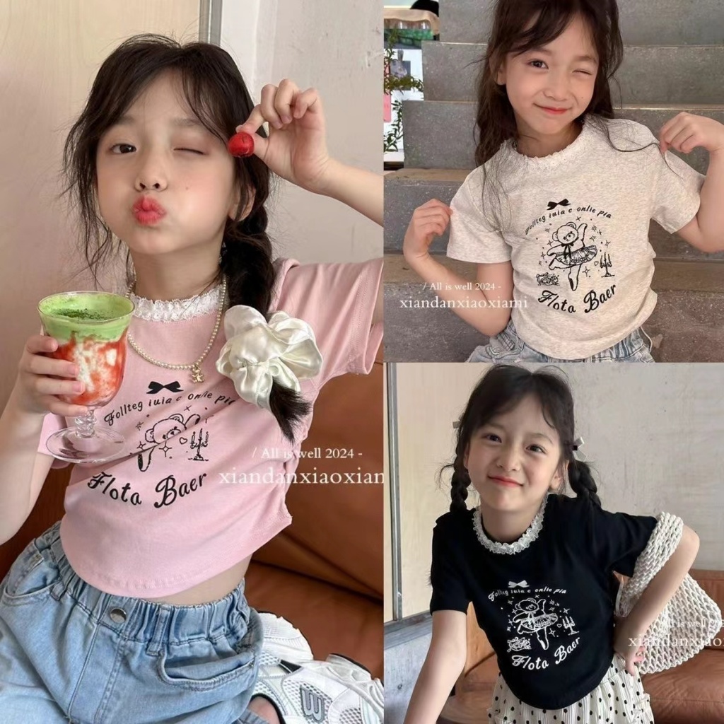 Kaos katun renda renda Korea untuk anak perempuan berusia 2-10 tahun