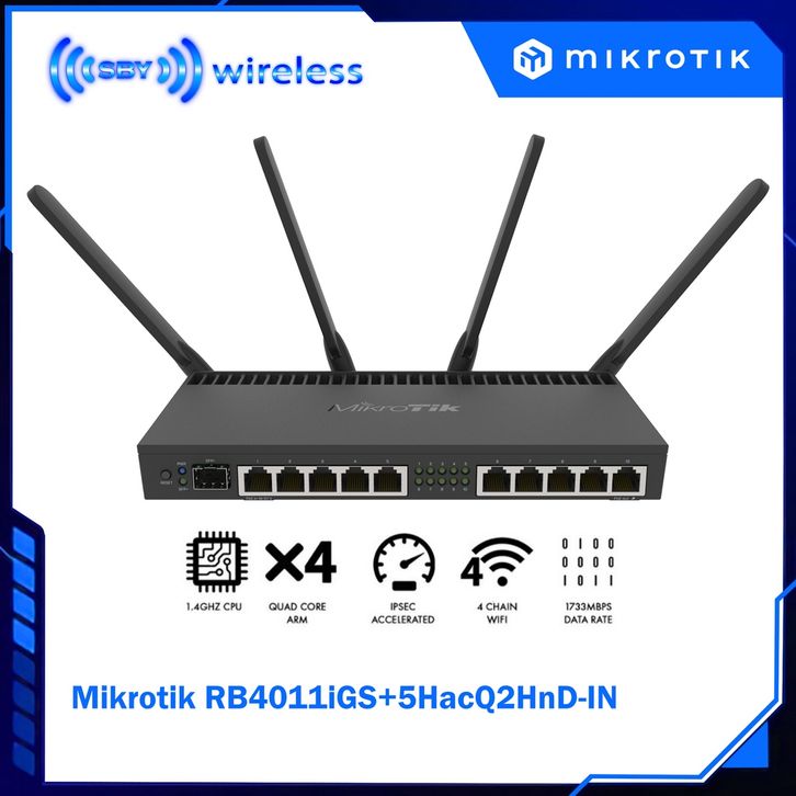 Mikrotik RB4011iGS+5HacQ2HnD-IN Router Wireless Indoor (Desktop case + SFP + Wireless Dual Band )