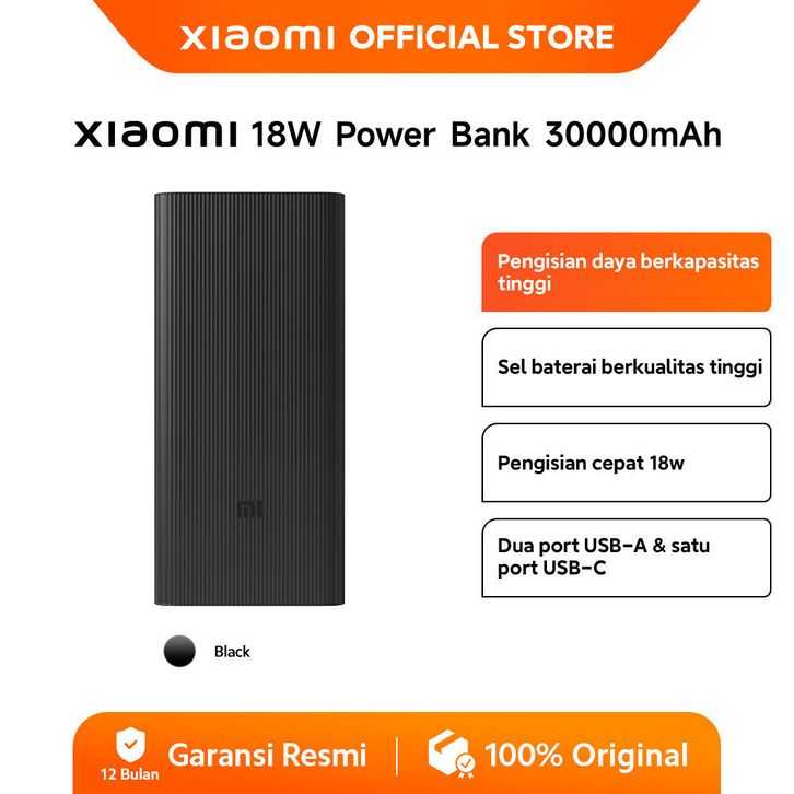 Xiaomi 18W Power Bank 30000mAh | Pengisian Daya Berkapasitas Tinggi | Sel baterai berkualitas tinggi | Pengisian daya c