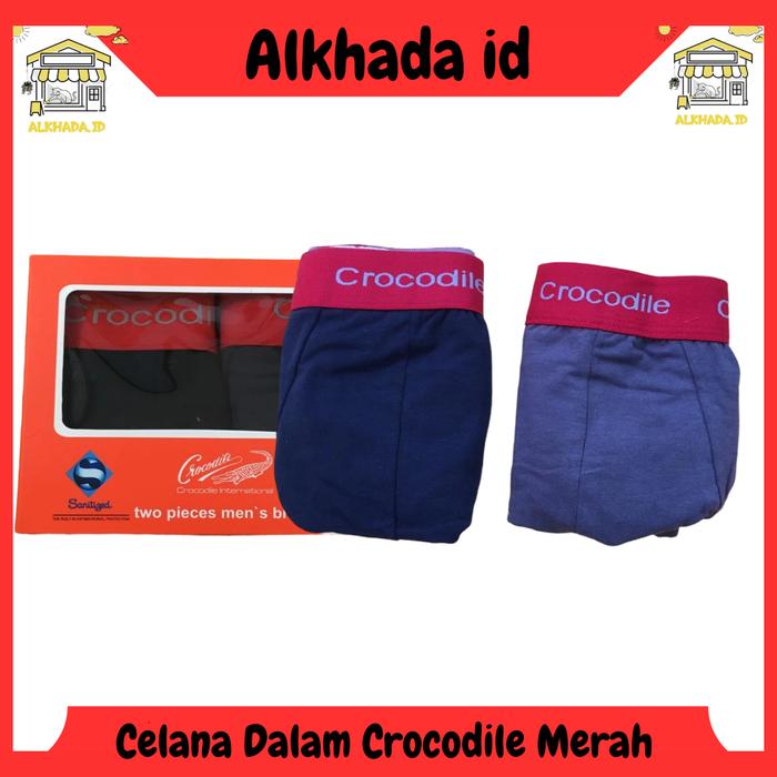 Celana Dalam Pria Dewasa 4Pcs / 2Box Celana Dalam Laki Laki Dewasa Bahan Katun Merk Crocodile Merah