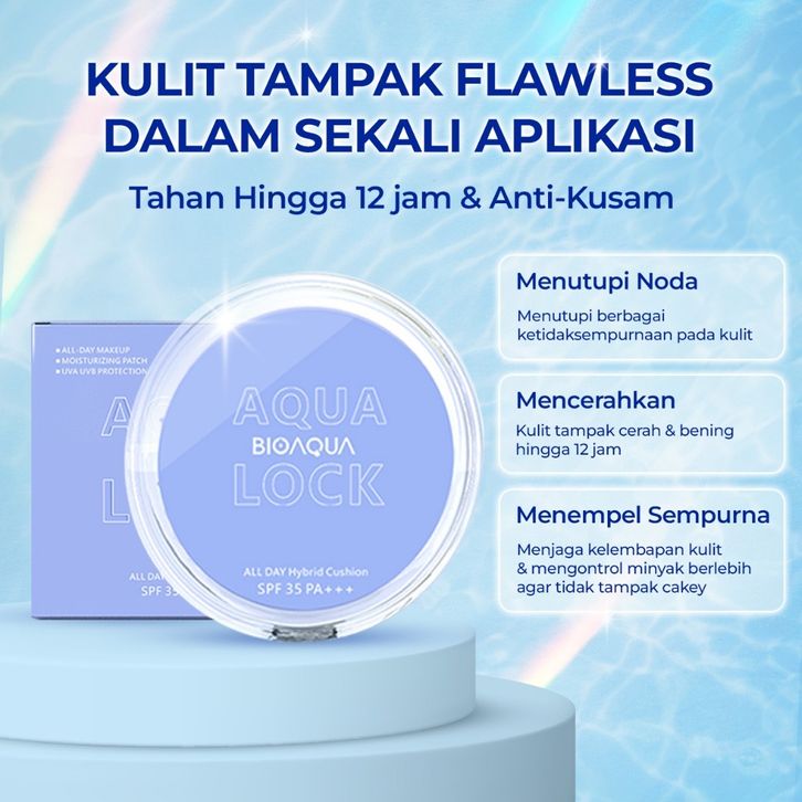 BIOAQUA AquaLock ALL DAY Hybrid Cushion Hydrating SPF35 PA+++ Bedak Cushion Waterproof BB Cushion Original 100%