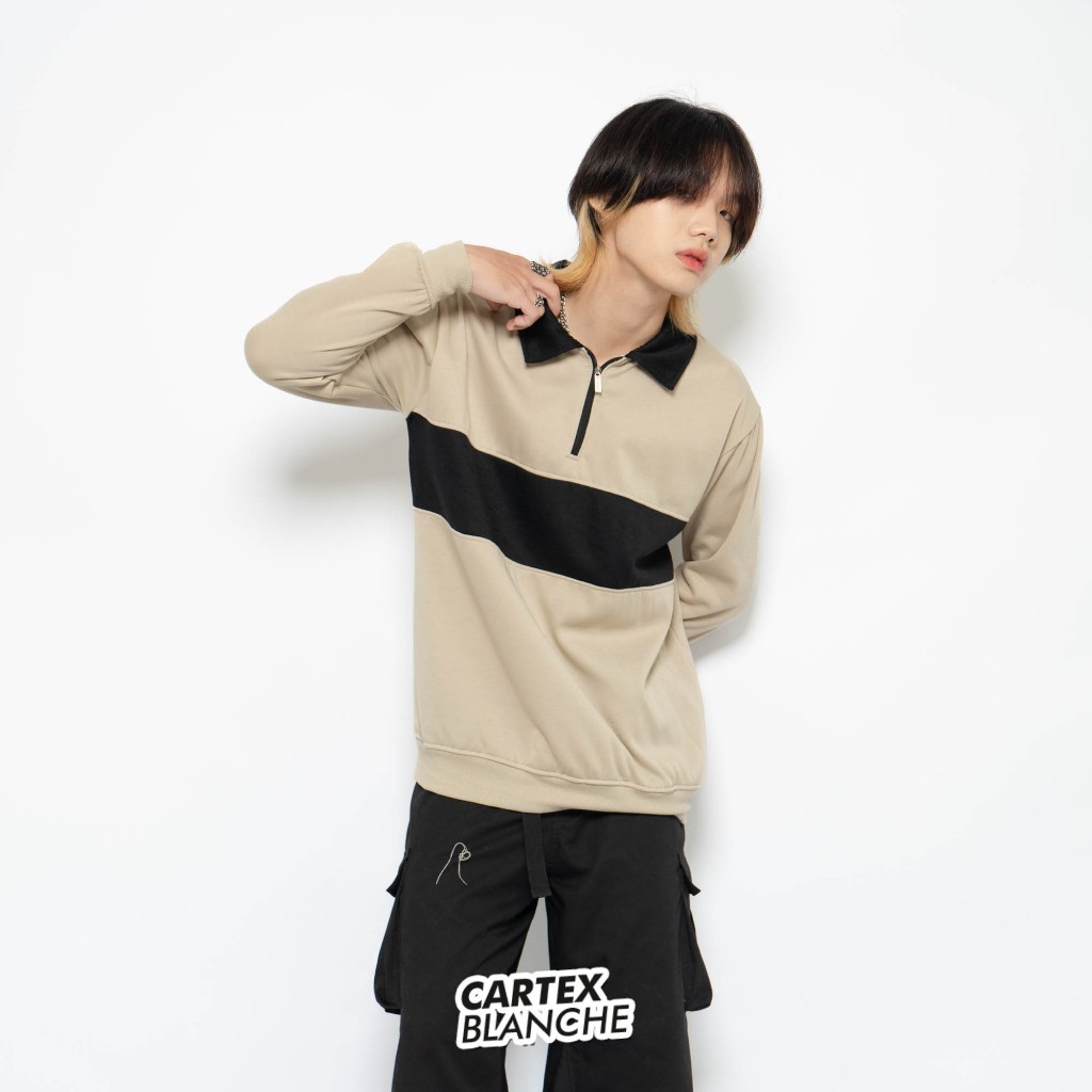Twotone Mix Halfzip Rugby Sweater Jaket Polos Unisex