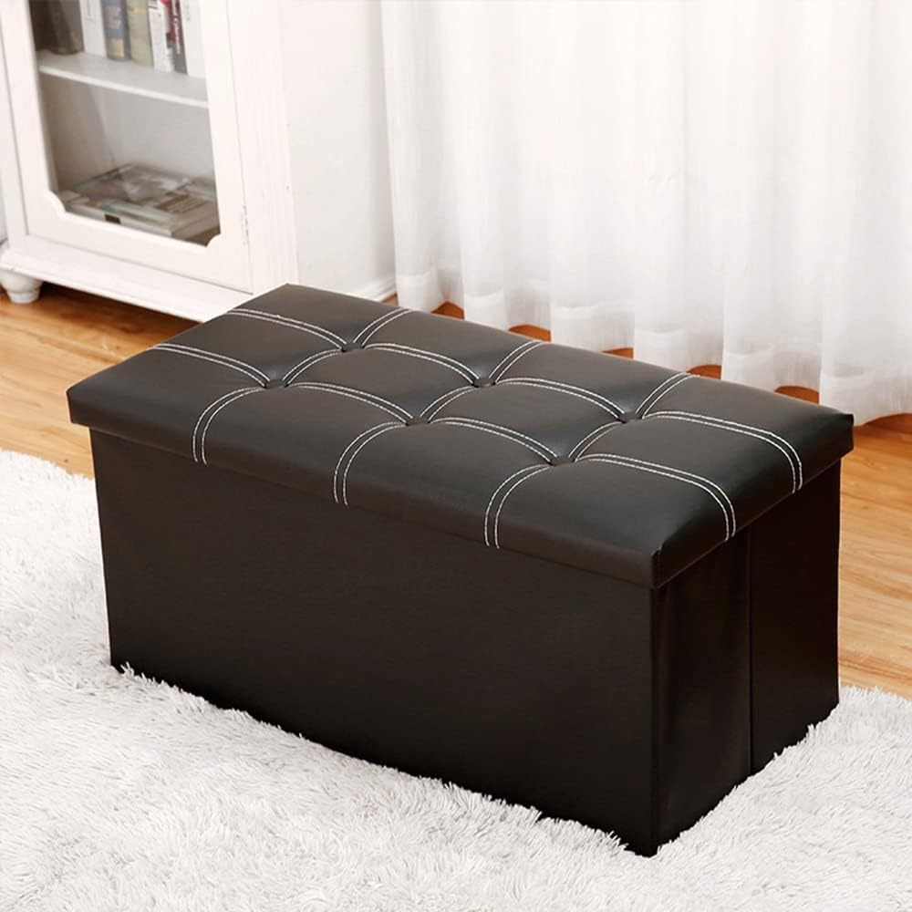 LUEFAT SOFA KOTAK STORAGE BOX FOLDABLE LEATHER WATERPROOF 76X38X36.5CM - L76 - BLACK