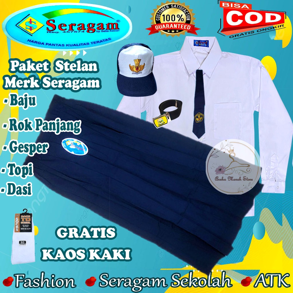 Stelan Baju SMP Lengan Panjang Rok Rempel Panjang Merk Seragam