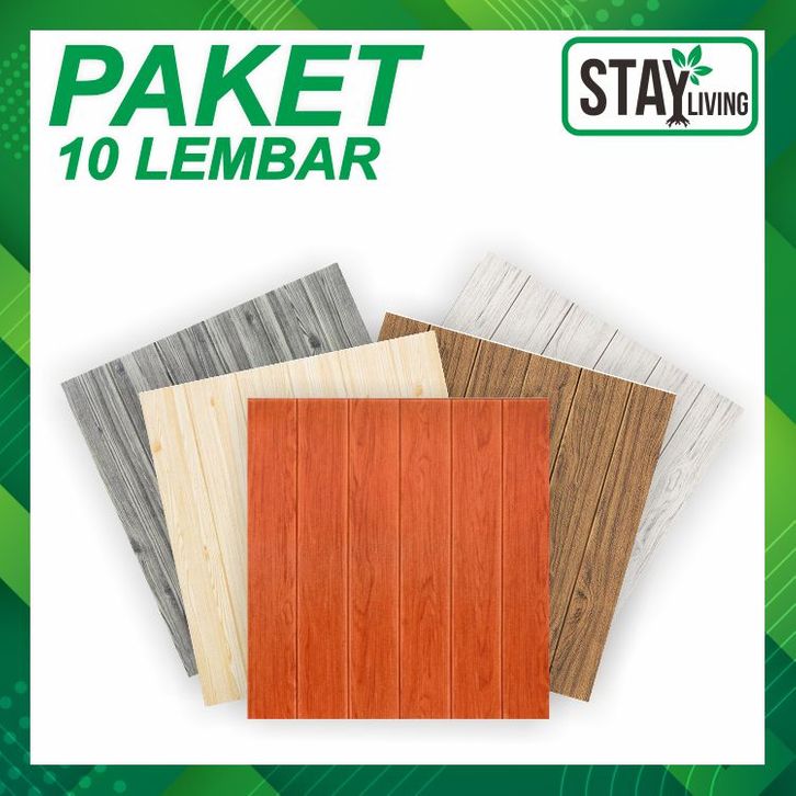 Paket 10 Lembar Wallpaper Dinding Foam 3D Motif Serat kayu Walpaper Dinding Dekorasi Kamar 70cm x 35cm