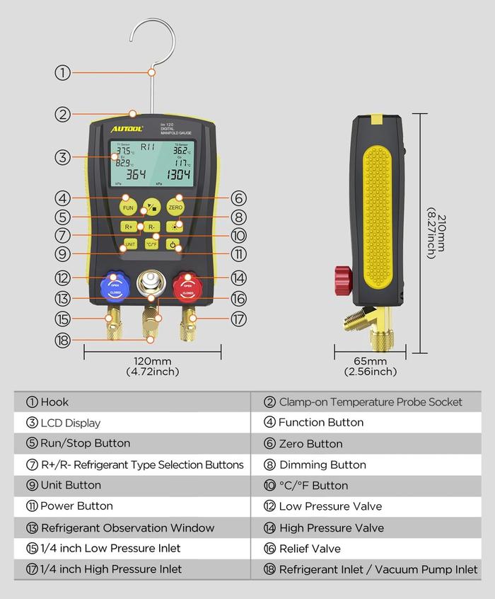 AUTOOL LM120 REFRIGERATION MANIFOLD DIGITAL HVAC GAUGE CAR AC METER - LM120 BASIC