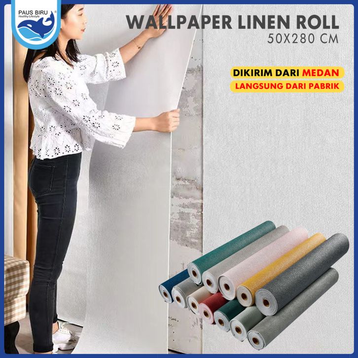 Wallpaper Linen Roll Wallpaper Dinding Dekorasi Kamar Sticker Dinding Wallpaper Coral 50x280cm