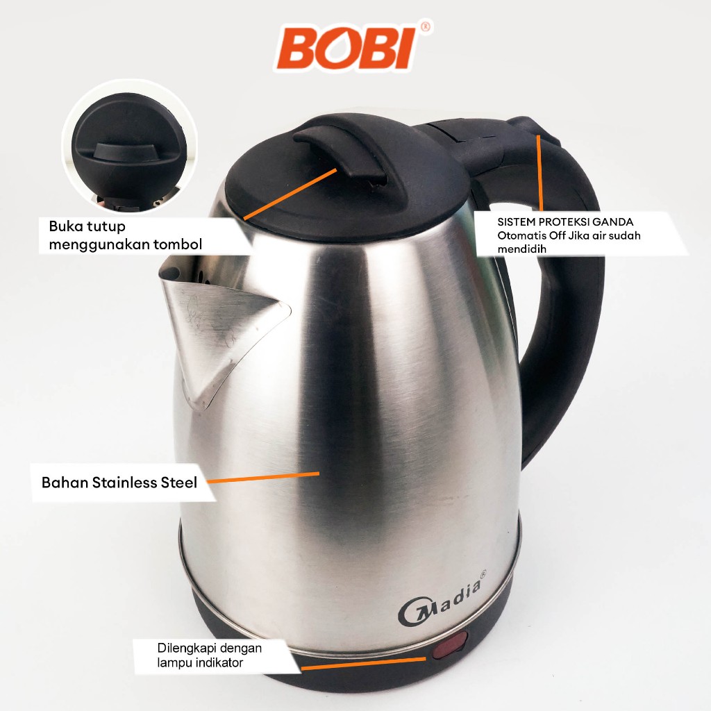 TEKO LISTRIK 1,8 LITER STAINLESS STEEL ELECTRIC KETTLE 1,8 LITER THERMOS LISTRIK TEKO LISTRIK AIR PANAS TEKO AIR PANAS