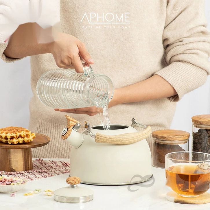 Teko Siul Air Panas 2,5L Korean Kettle Ceret Ketel Air Whistling Kettle Wooden Stainless Steel Aesthetic DIKA