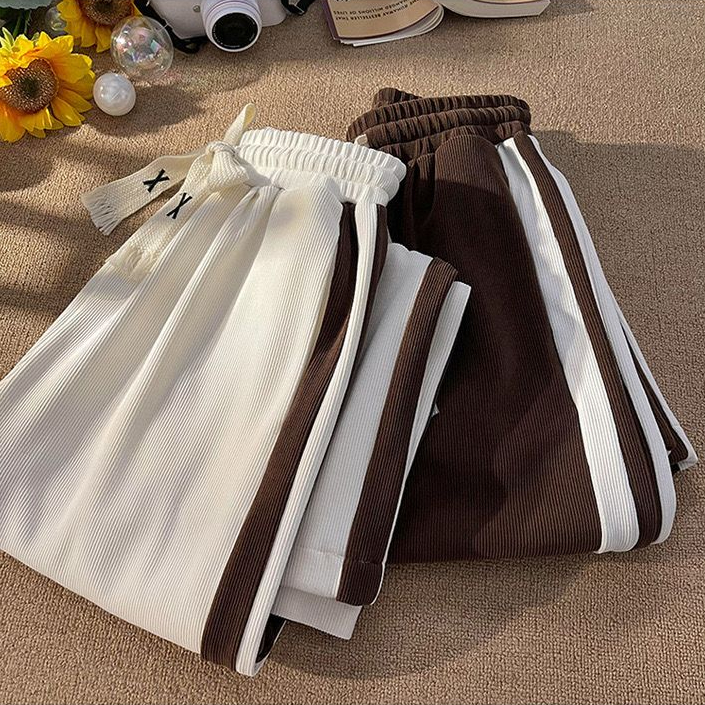 celana corduroy,corduroy pria GDTIMA Celana Corduroy Wanita Elastic Highwaist Casual Loose Pants/Celana Cargo Corduroy