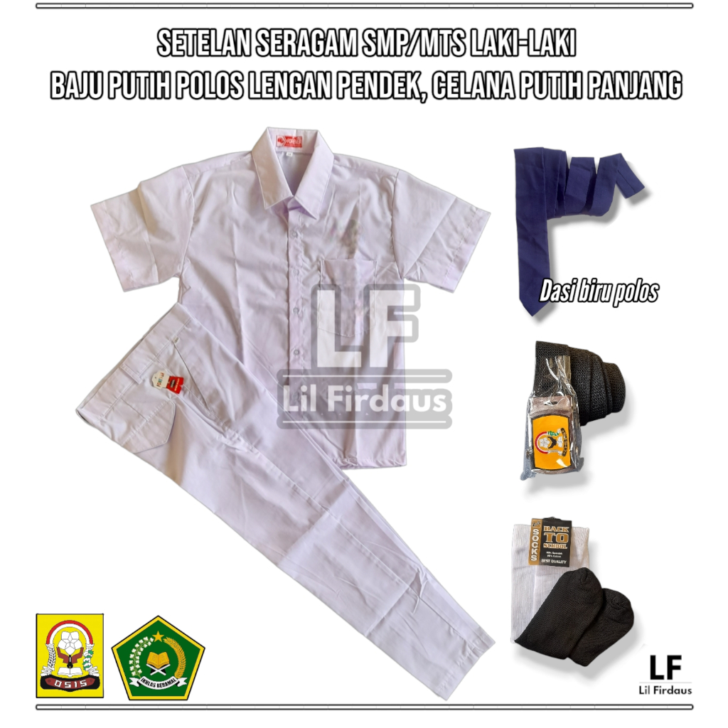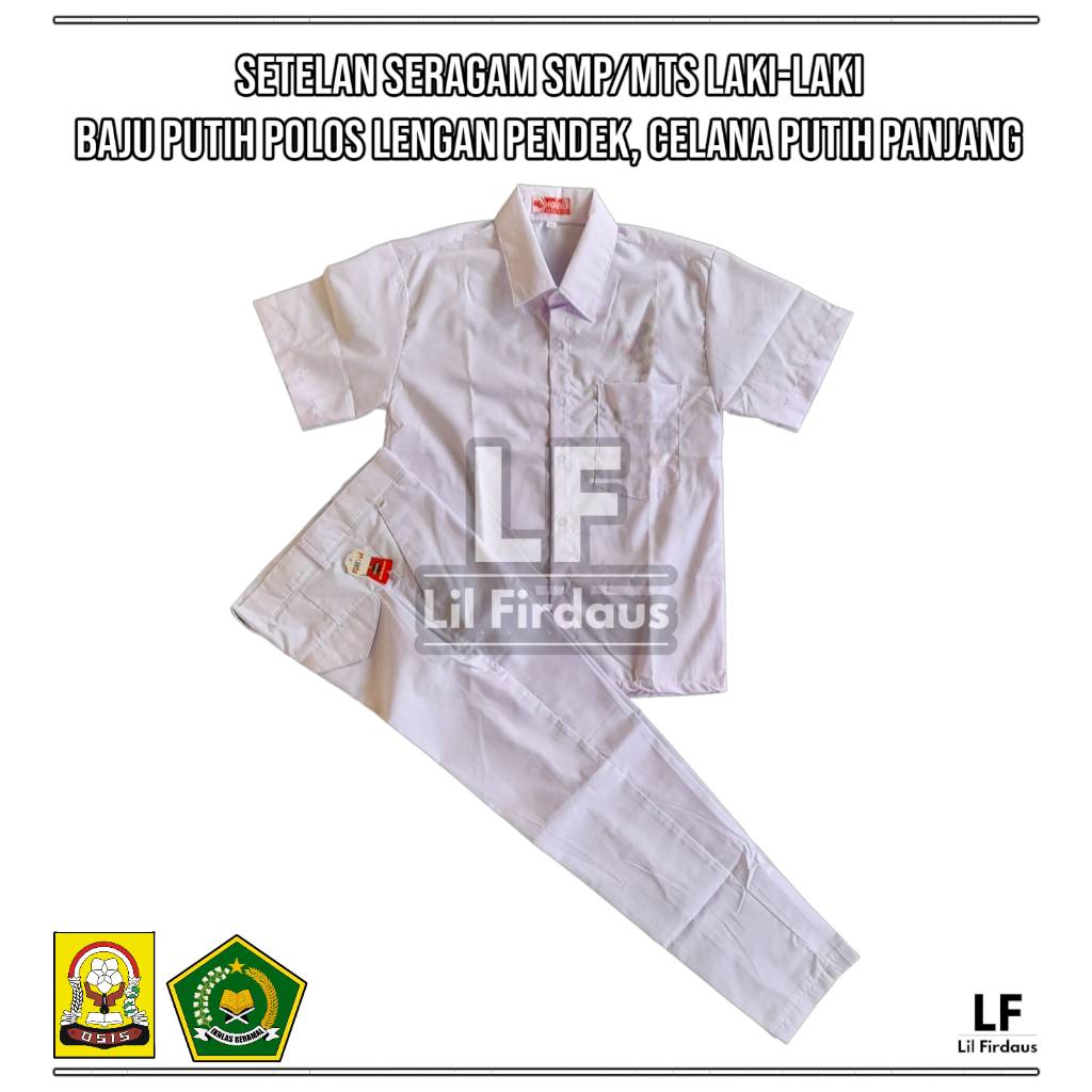 Seragam SMP/Mts Laki-Laki Satu Setel Komplit Baju Putih Polos Lengan Pendek Celana Putih Panjang