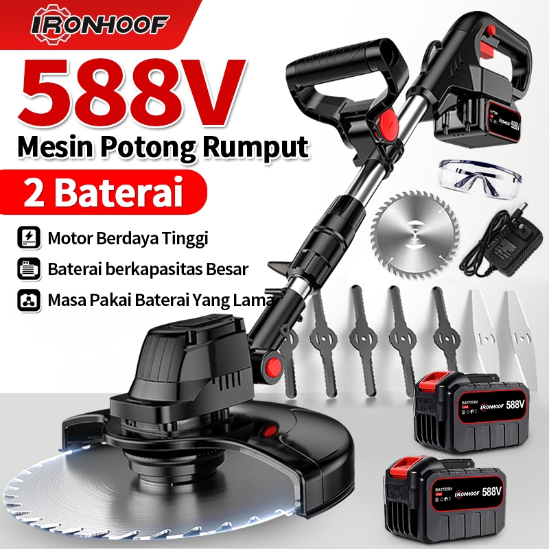 588V/388V MESIN POTONG RUMPUT PEMOTONG RUMPUT LISTRIK PEMANGKAS RUMPUT DENGAN BATERAI LI-ION