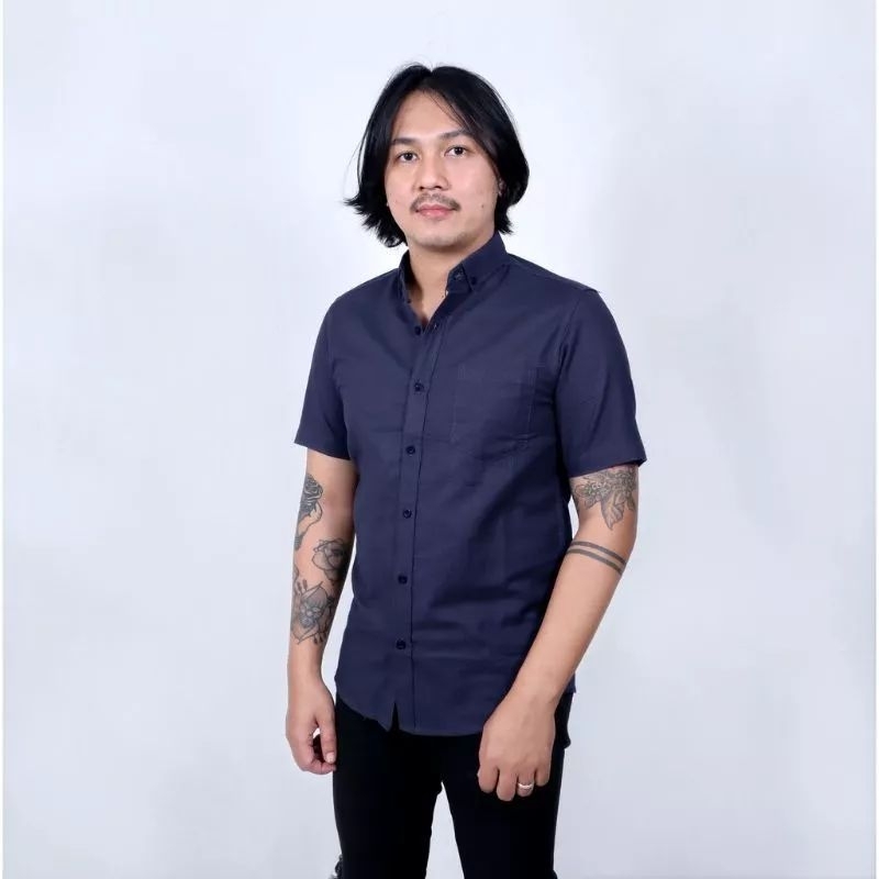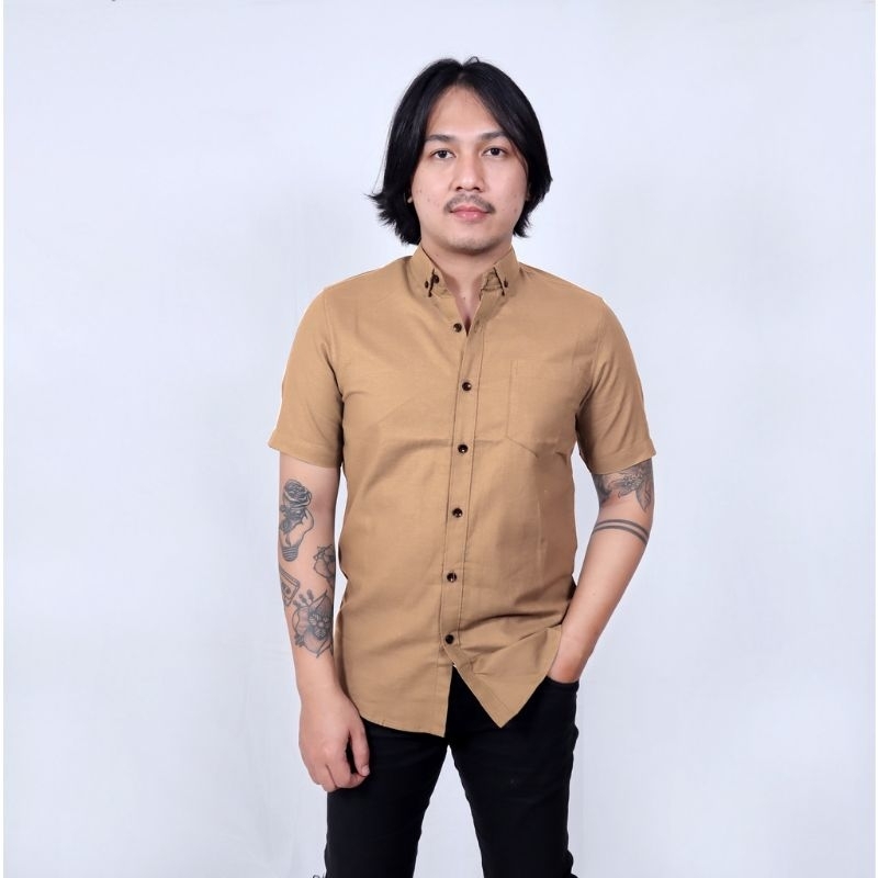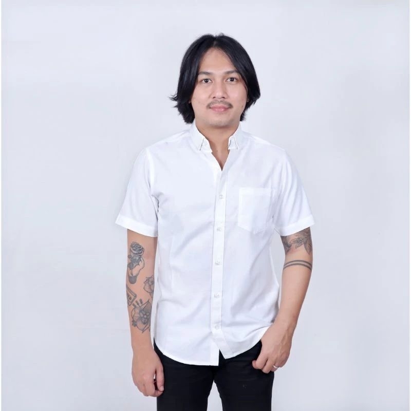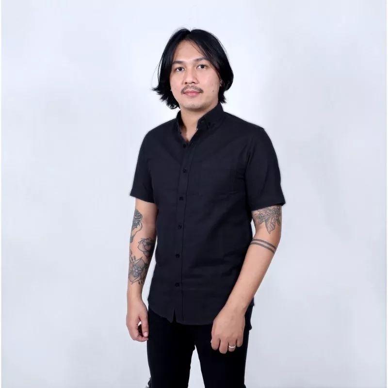Atasan Kemeja Pria Polos Hitam Lengan Pendek Casual Formal Slim fit Bahan Premium