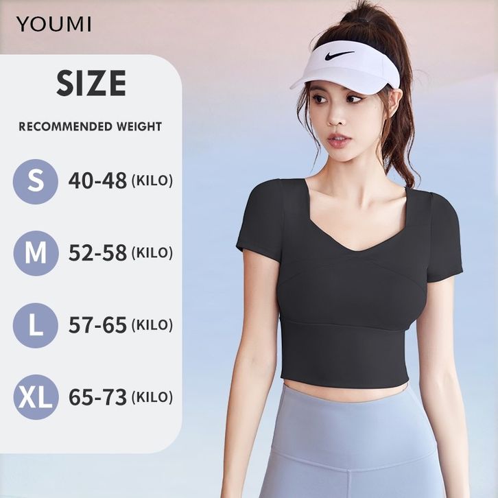 Kaos Olaraga Wanita YOUMI Yoga Gym Pilates Outfit Atasan Lengan Pendek Fit Body Baju Senam Wanita Aerobic Terbaru Slimfi