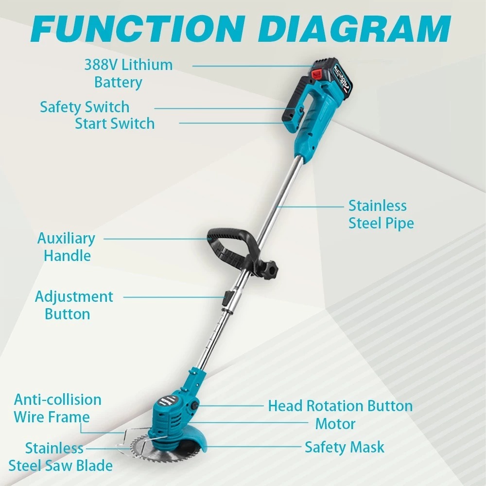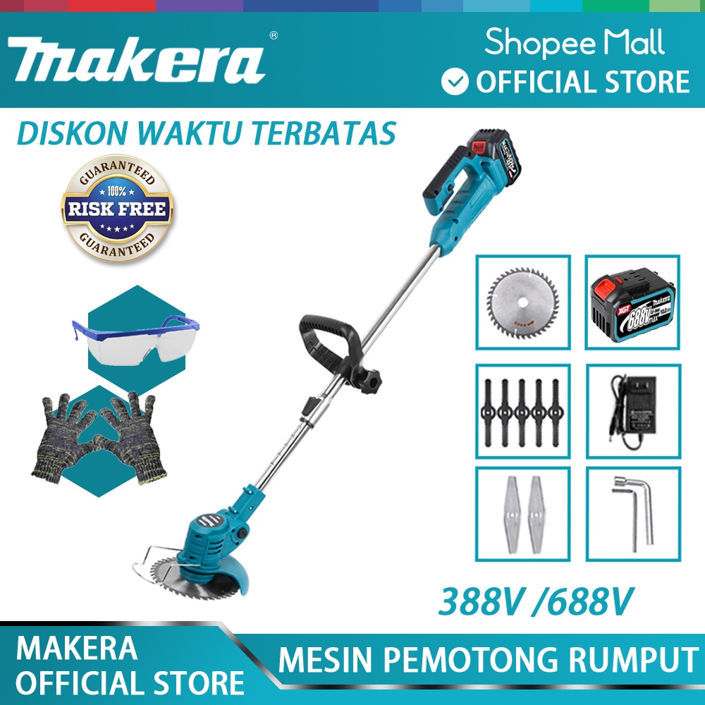 MAKERA 688V MESIN POTONG RUMPUT PEMOTONG RUMPUT LISTRIK PEMANGKAS RUMPUT DENGAN BATERAI LI-ION