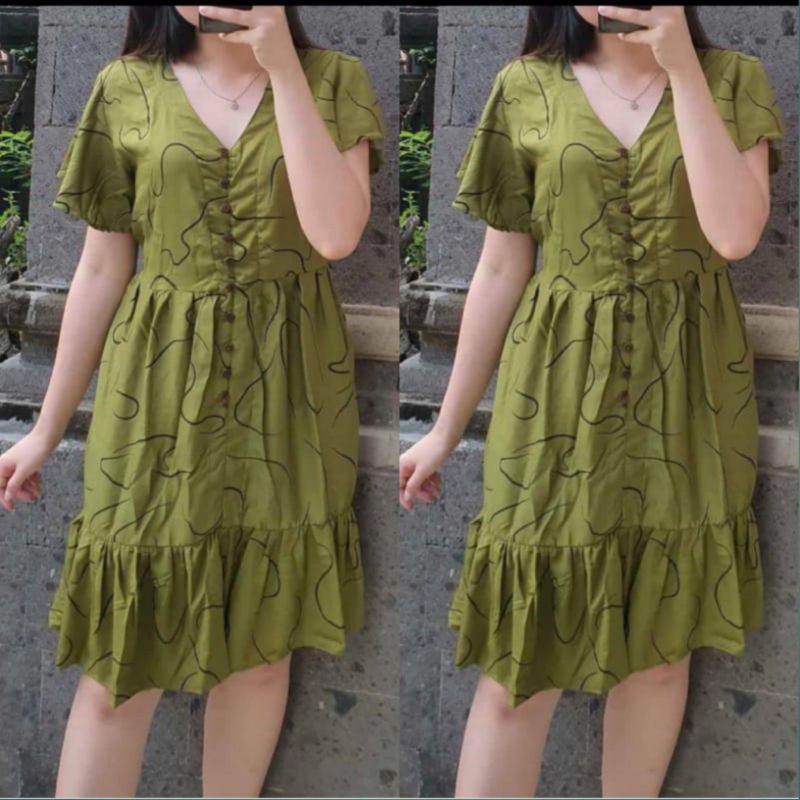 Daster Polo Press Body Bumil Busui Frendly Motif Salur Mini Selutut Dress Kancing Aktif Bagian Depan