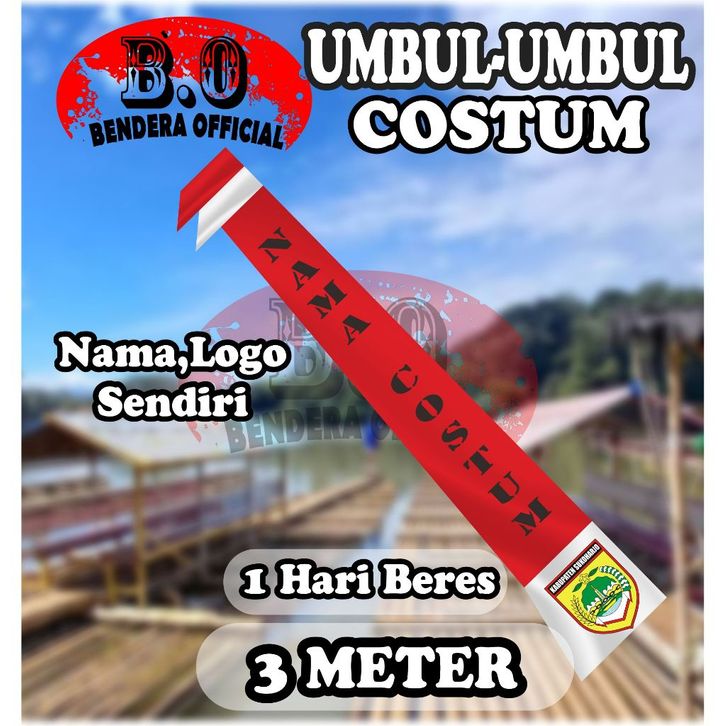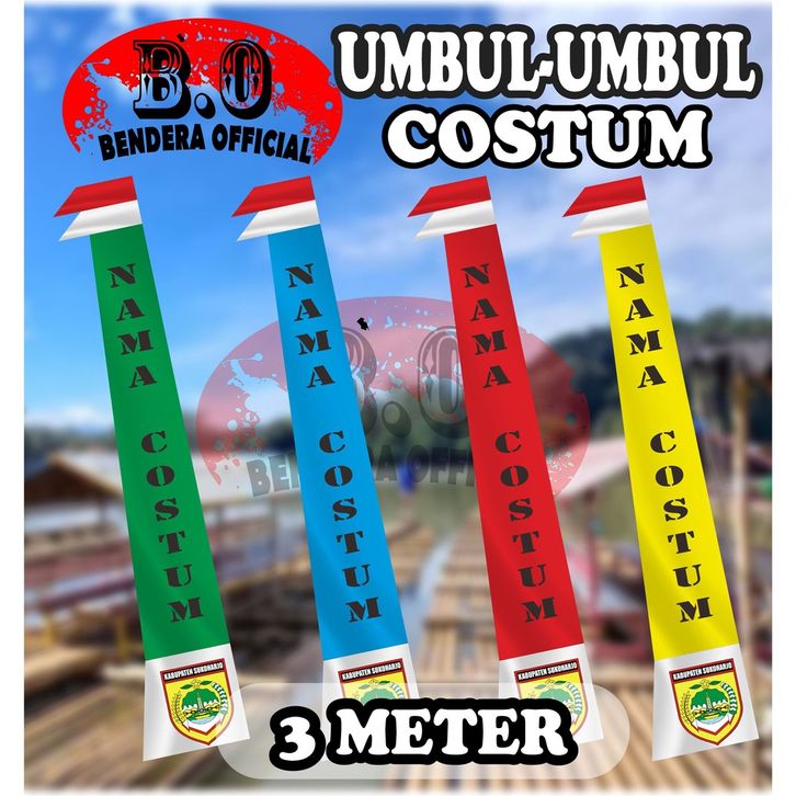 (LOGO+TULISAN) UMBUL UMBUL COSTUM WARNA WARNI 3 METER TULISAN HITAM Umbul Umbul Kemerdekaan Umbul Umbul Bendera