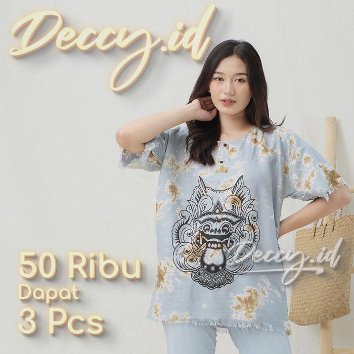 deccy.id - Paket 3pcs Baju Kaos Barong Bali Pria Wanita Santai Rayon Dewasa Kancing Motif - Dewasa / XL - Dewasa / XL