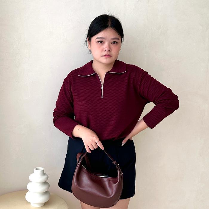 Caerys - Vina Top - Atasan Lengan Panjang Wanita - Long Sleeved Cream Fit Knitwear Rib Basic Baju Casual