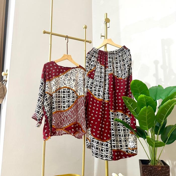 RICHA Setelan Baju Atasan dan Celana Kulot Batik Richa Setelan Lengan 7/8 Panjang Katun Rayon Dewasa Wanita Motif