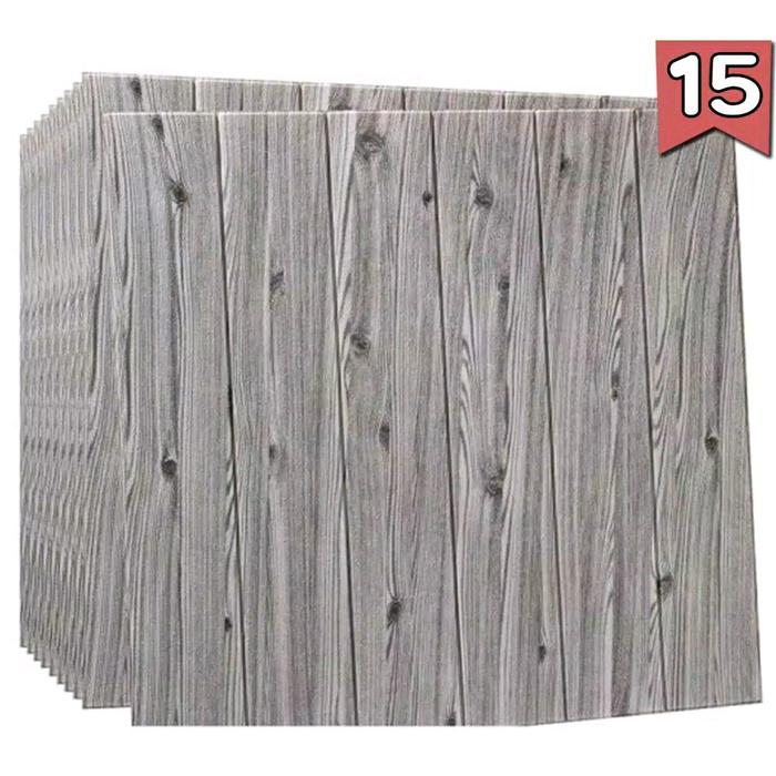 Wallpaper Dinding Foam 3D Kayu Abu 70x70 cm 10 Lembar