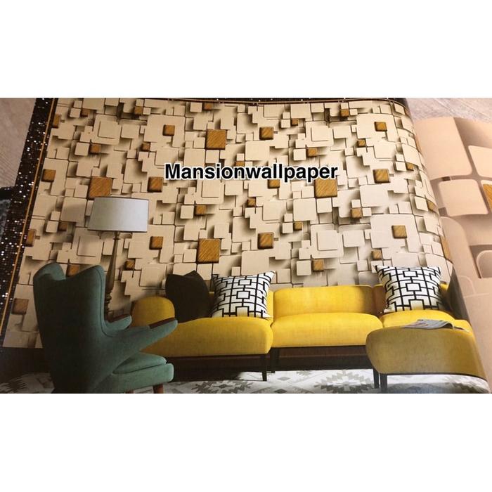 Wallpaper Dinding Murah Motif Kotak 3D Visual Modern