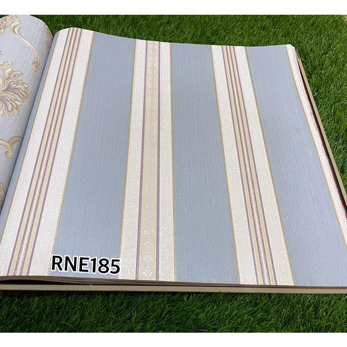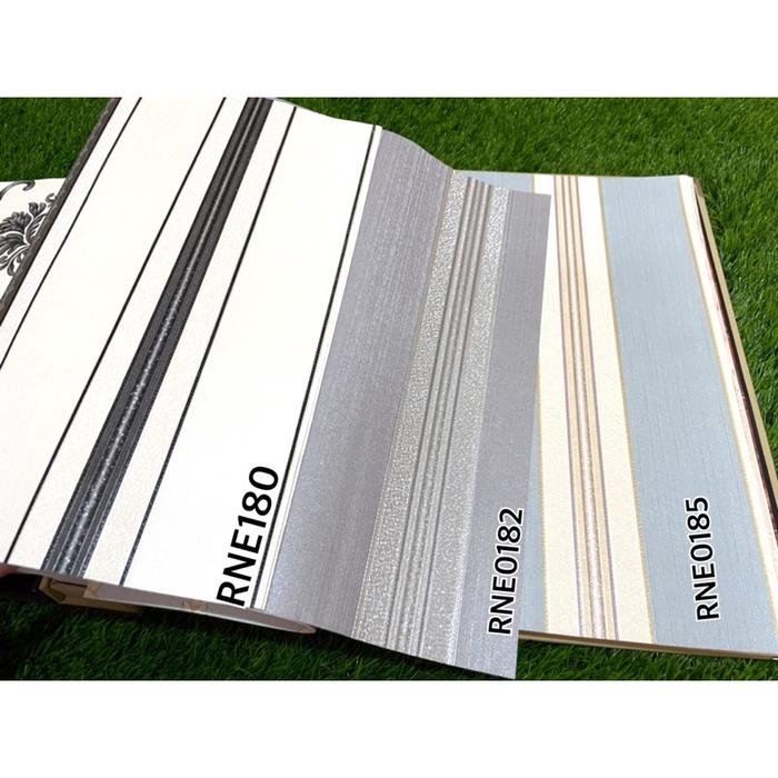 Wallpaper Dinding Garis Salur Cream Putih Abu Biru Simple