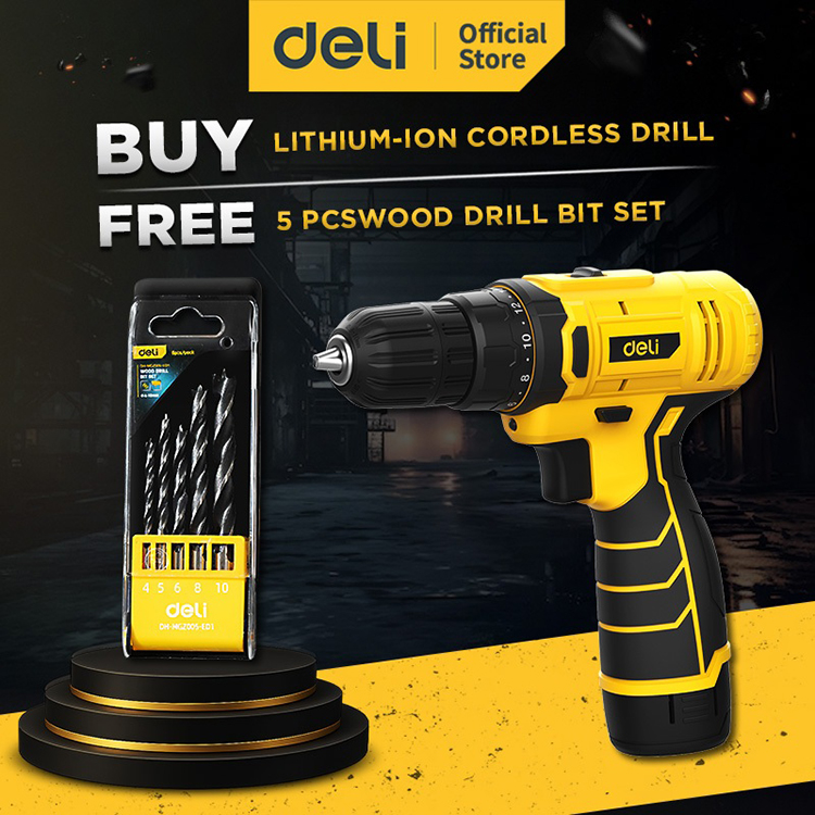 Deli Cordless Drill Mesin Bor Baterai Kuat Bertenaga Bor Impek Impact Wrench 10mm Mesin Bor Tembok Kayu Besi