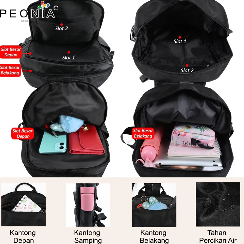 Peonia PNA COLLA Water Resistant Tas ransel wanita Import korea style Pria Punggung Kantor Kerja Sekolah Kuliah Outdoor