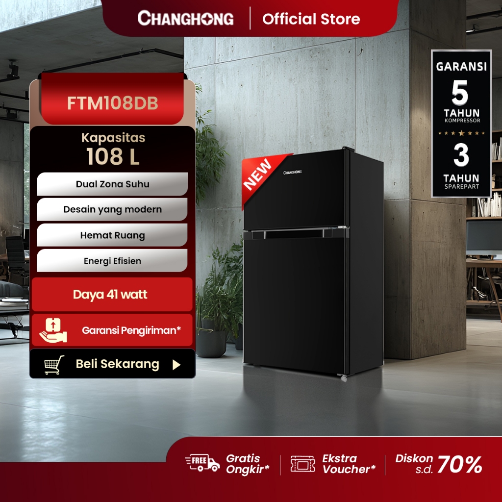 [Star] Kulkas 2 pintu Mini New Changhong (Refrigerator) Lemari Es Kapasitas 108 Liter 30086