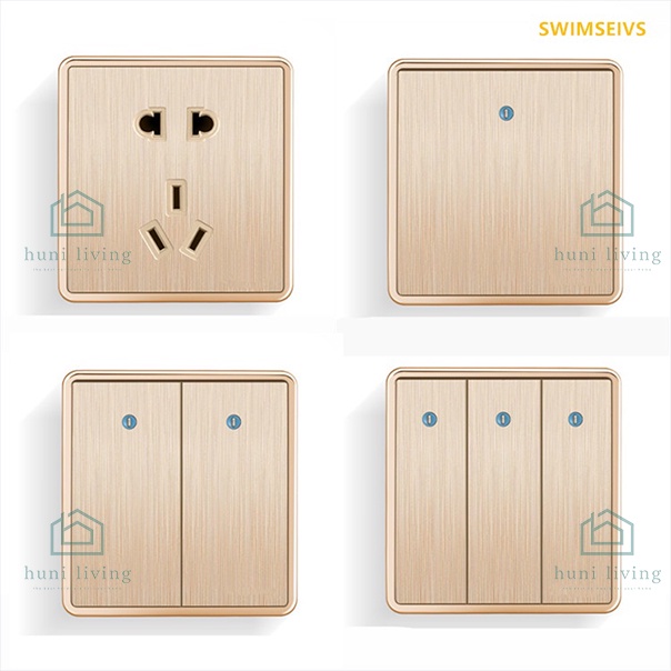 Saklar Sakelar Lampu Emas Gold/Grey/White/Black Brushed 1/2/3 Gang Electrical Switch Power Socket with USB