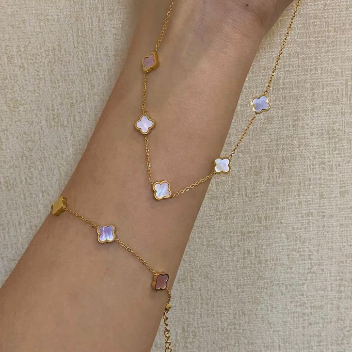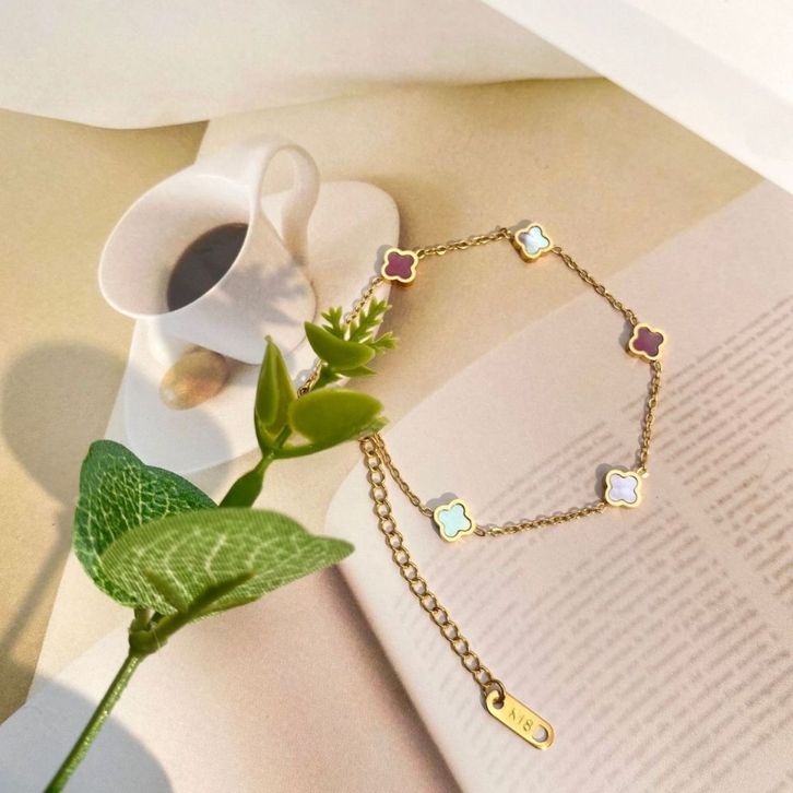 Gelang Wanita Clover Berkualitas Tinggi Gelang Stainless Steel yang Dapat Disesuaikan Tidak Pudar
