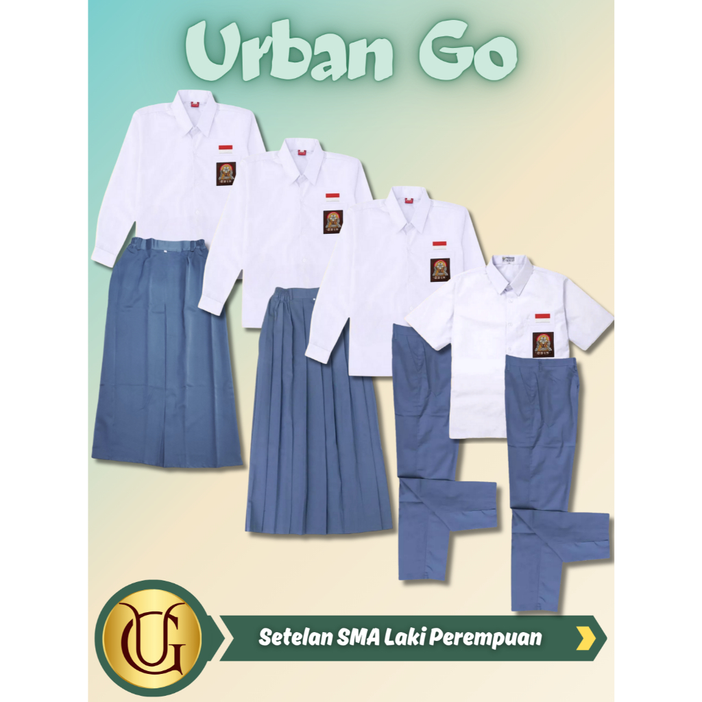 Setelan Seragam Sekolah SMA SMK Laki Perempuan Atasan Baju Kemeja Lengan Panjang Pendek Bawahan Celana Rok Rempel Pliske