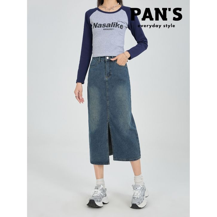 TERLARIS PAN'S Rok Wanita 3/4 Jeans Bahan Denim Korean Style / Rok Midi Style A-Libe Split Tengah / Rok Wanita
