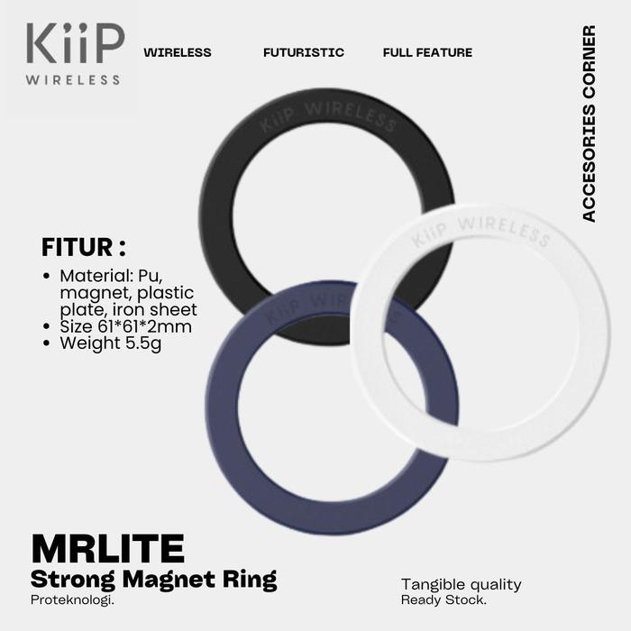 KiiP MRLITE Strong Wireless Magnetic Ring Magsafe Magnet Plate Besi HP Universal - Putih