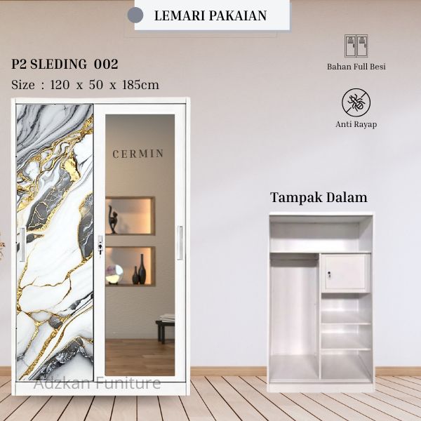 Lemari Pakaian Bahan Full Besi Varian 2 Pintu Full Sleding 90cm. Ready Stok. Original Produk