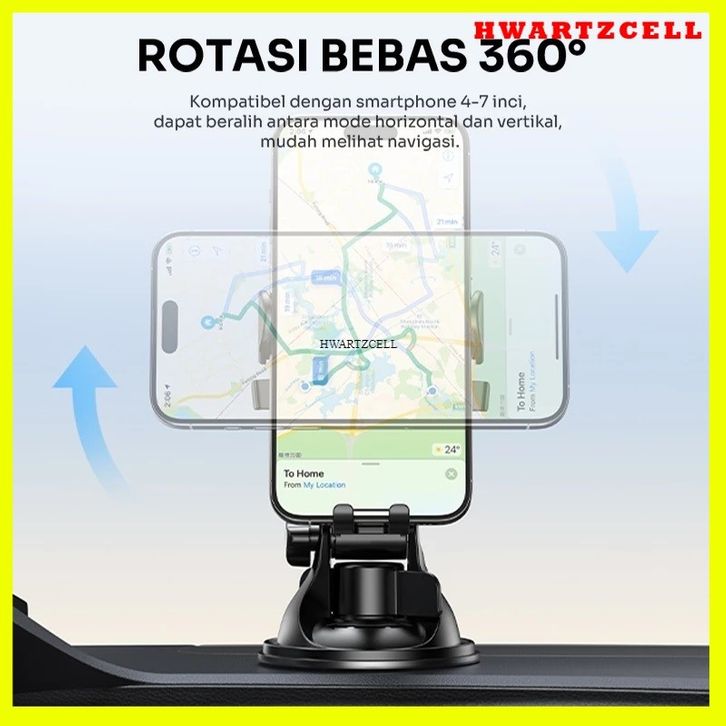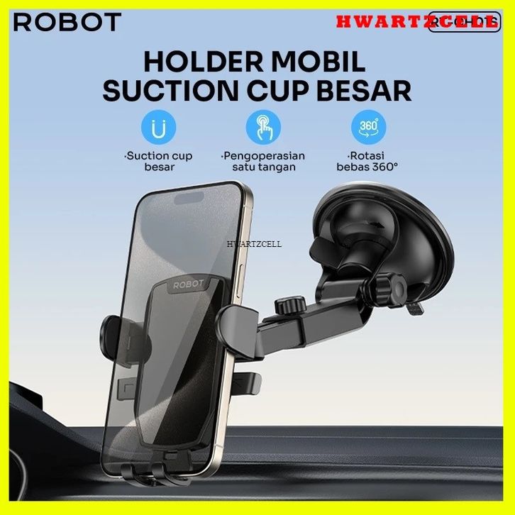 holder hp mobil robot jepit HWARTZ ROBOT RT-CH01S Suction Cup Rotation 360° Car Holder HP Mobil Smartphone - Garansi Ro