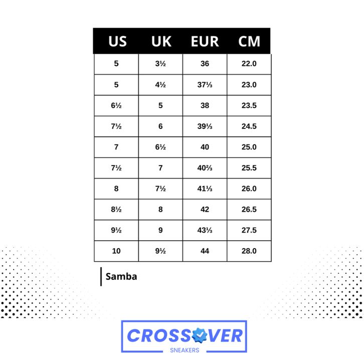 EUR 36 / 22 CM, EUR 37 / 23 CM, EUR 38 / 23.5 CM, EUR 39 / 24.5 CM, EUR 40 / 25 CM