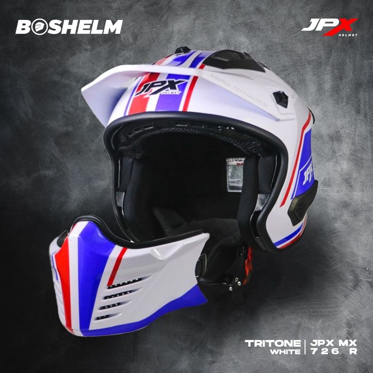 BOSHELM Helm Cross JPX MX-726R TRITONE MX-01 PEARL WHITE/RED Helm Full Face SNI