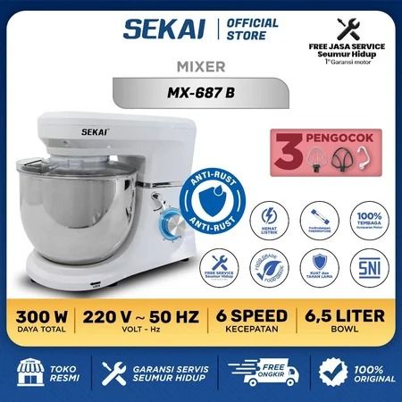 Stand Mixer Low Watt / Alat Pengaduk Adonan Mixer 6.5L / MX 687 B / Alat Pengaduk Mixer Ortomatis / Stand Mixer Adonan