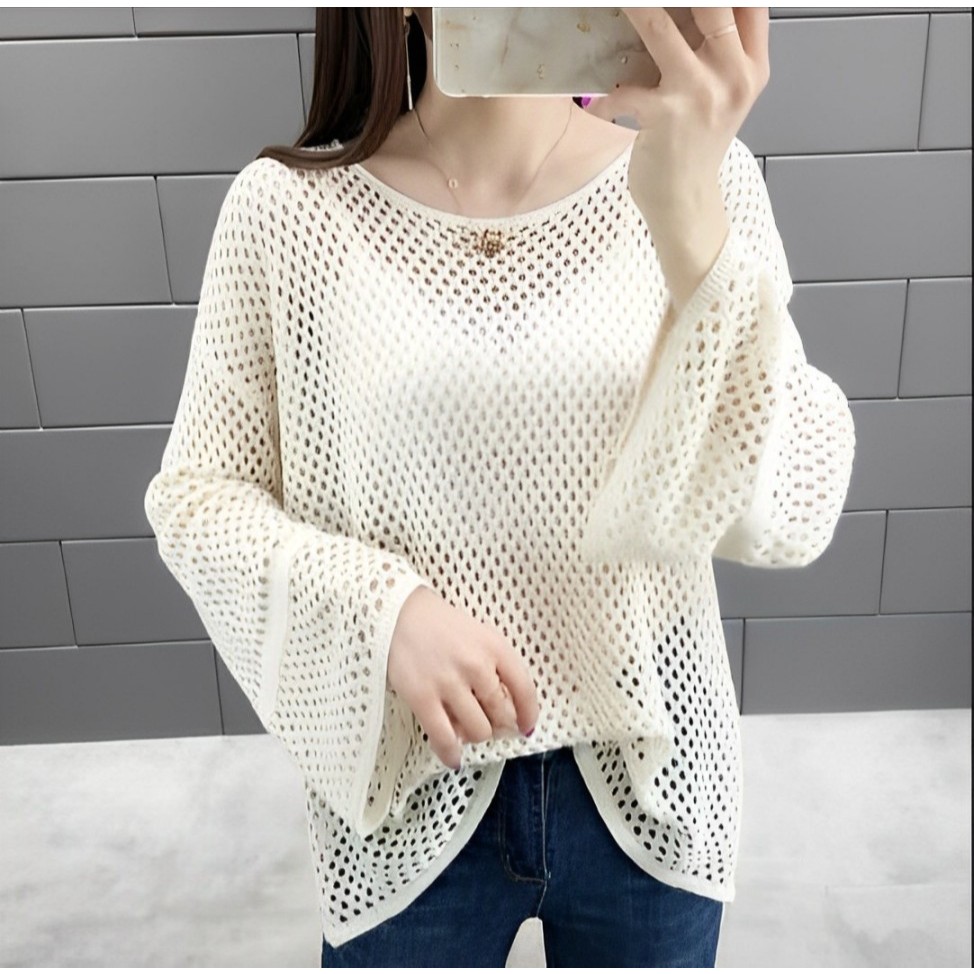 RO Blouse Rajut Messy Ld 90 - 100 cm P 60 cm B 200 gr Cotton rylic #4430