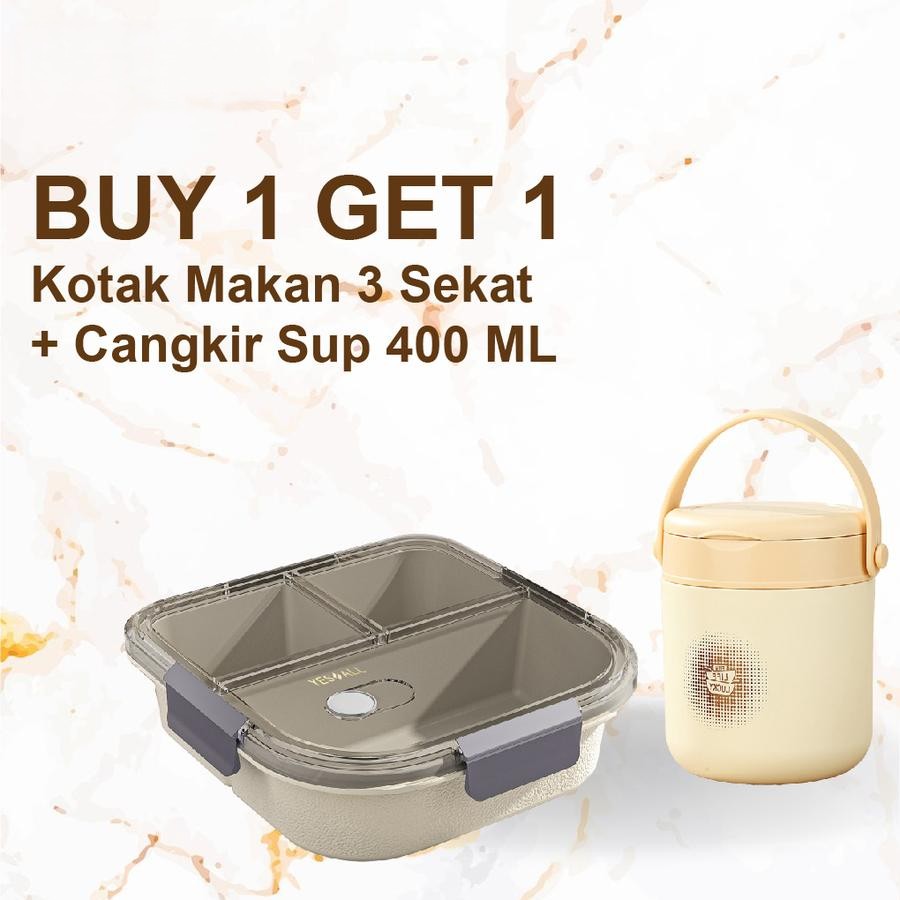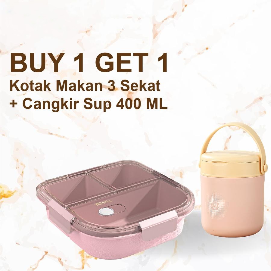 [BUY1GET1] Lunch Box 3 Sekat + Cangkir Sup Portable 400ml