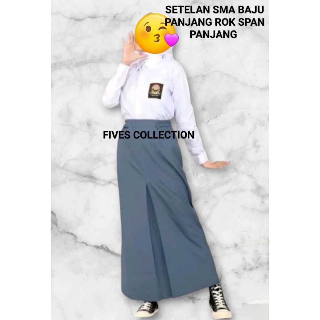 FIVES COLLECTION PROMO SET SERAGAM SMA PEREMPUAN BAJU PANJANG ROK SPAN PANJANG GRATIS ONGKIR