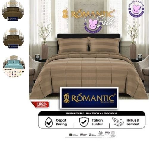 Bedcover Set Sprei Microtensel Coklat by ROMANTIC Silk Motif Salur Micro Lyocell Sutra
