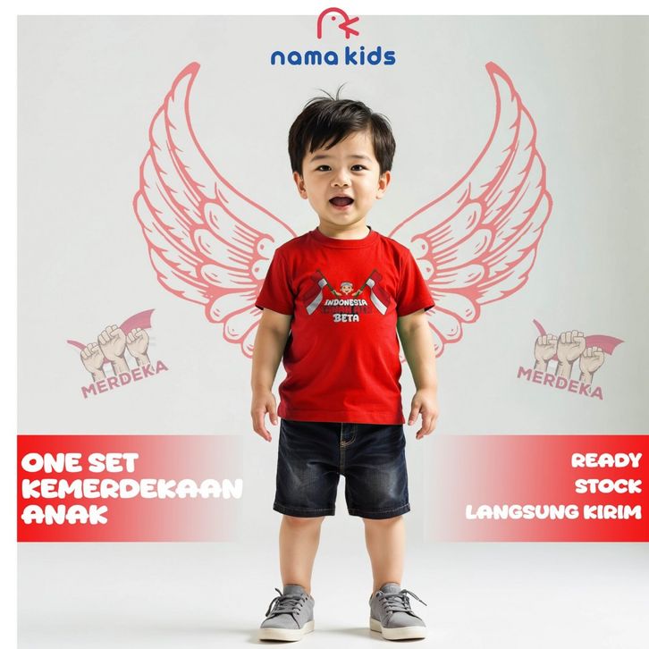 Baju Kemerdekaan Anak One Set Kaos Anak Dan Celana Jeans Pendek Tema Agustusan Kemerdekaan Indonesia Sablon 17 Agustus