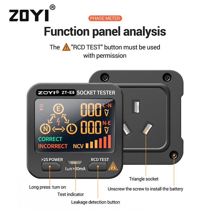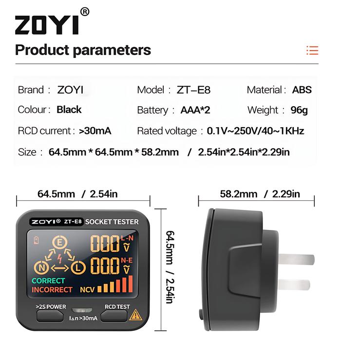 ZOYI ZT-E8 Digital Smart Socket Tester Voltage Test Socket Detector AC