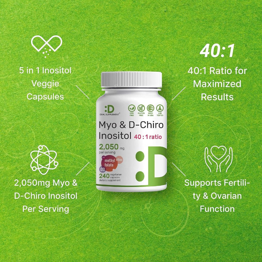 Deal Supplement Myo-Inositol & D-Chiro Inositol 2050 mg - 240 Capsules Fertility Folate Vegan